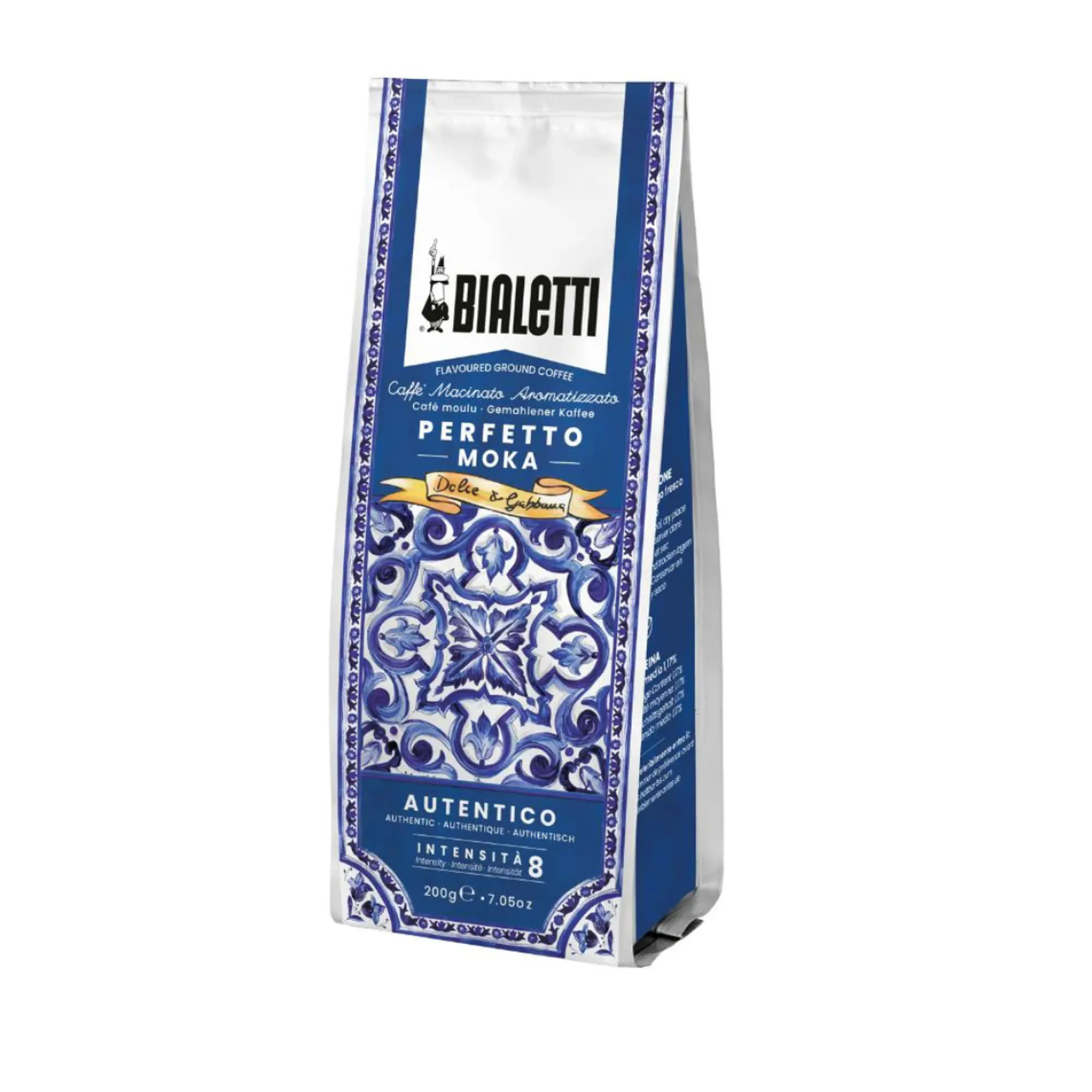 Perfetto Moka Autentico coffee embodies the collaboration between Bialetti's expert coffee roasters and the creative flair of Dolce&Gabbana.